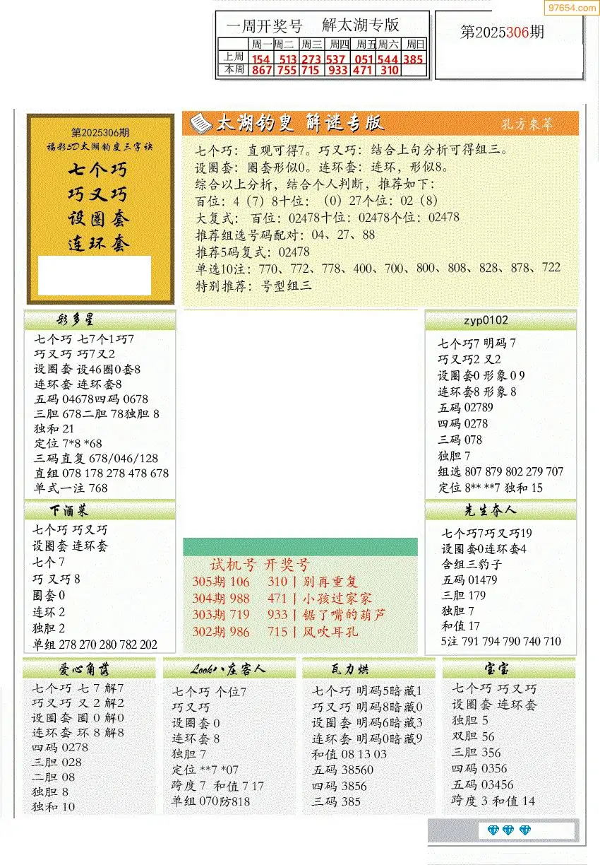 (2)25年306期本期3d图迷汇总