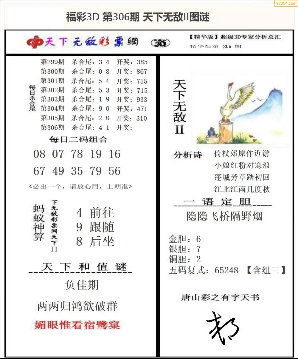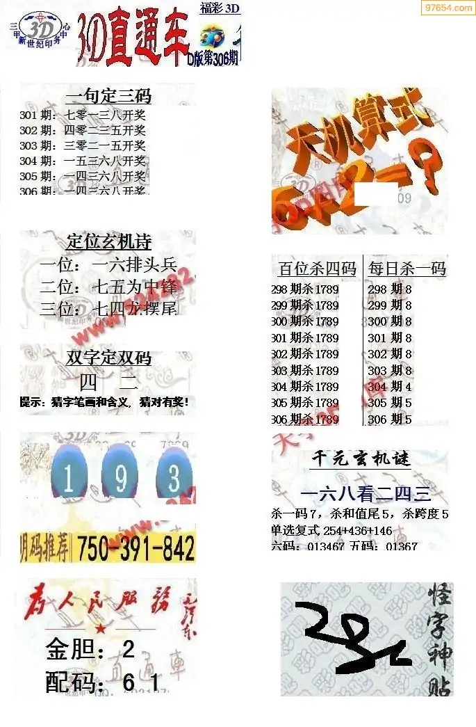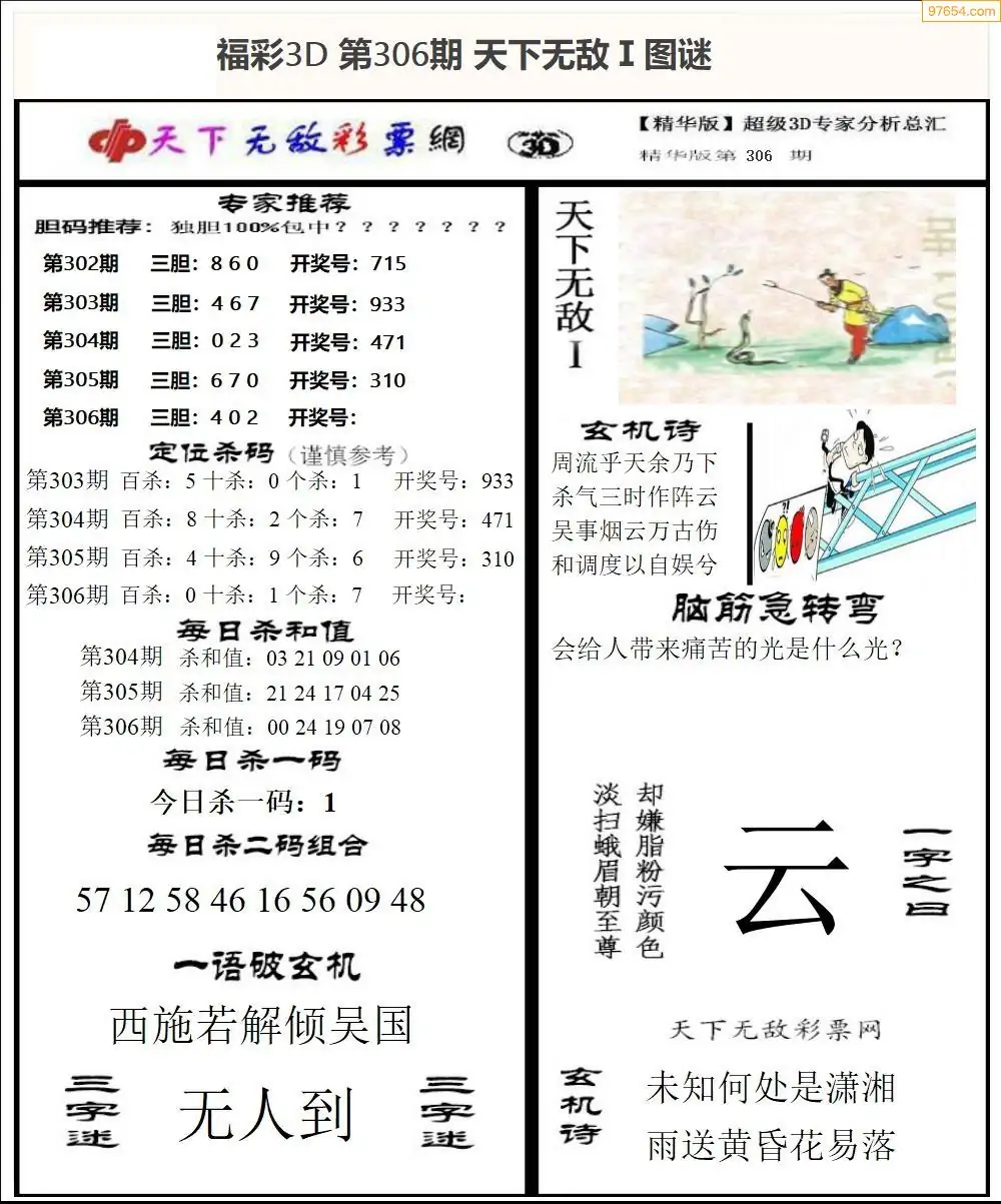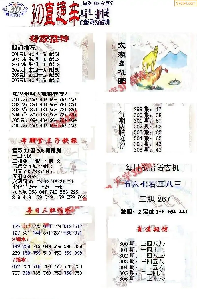 (8)25年306期今日3d各类彩报汇总