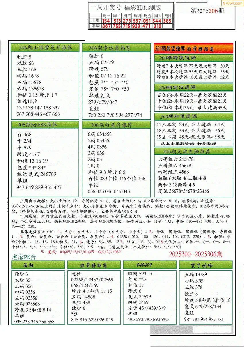 (3)2025306期3D预测总汇全图
