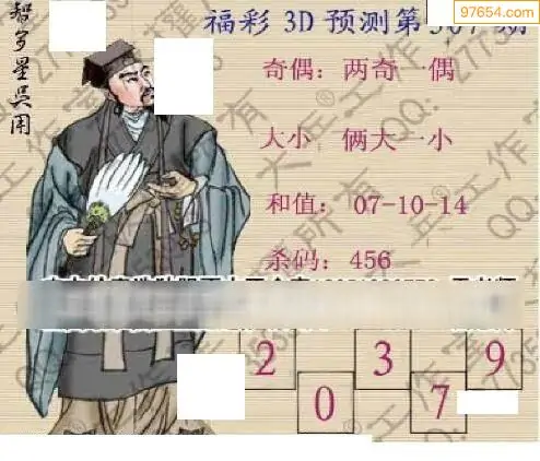 25307期福彩3D正版天宇和值谜