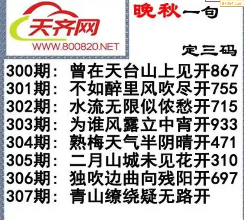 307期3D晚秋(和值)谜:十二点前 D:十二点整