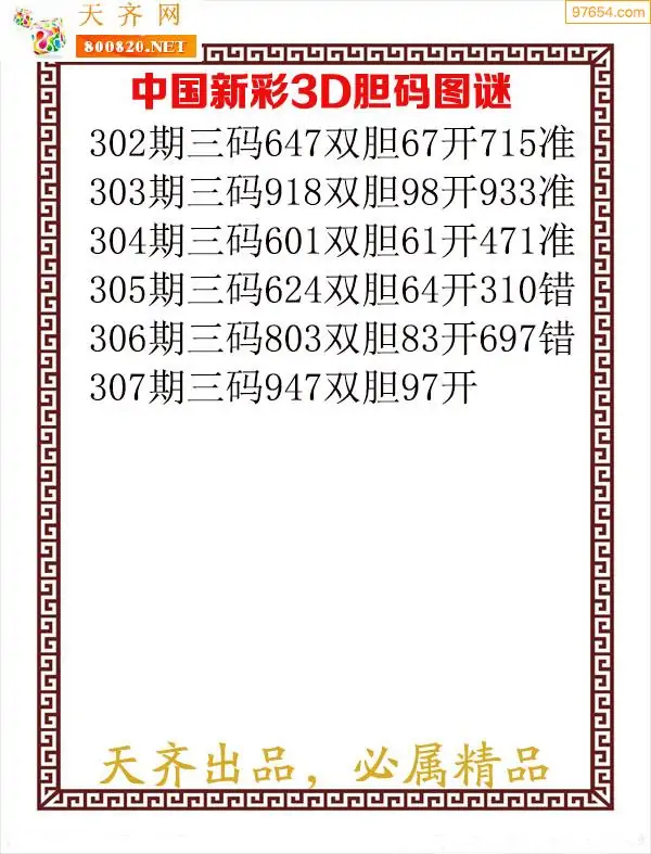(8)25年307期今日3d各类彩报汇总