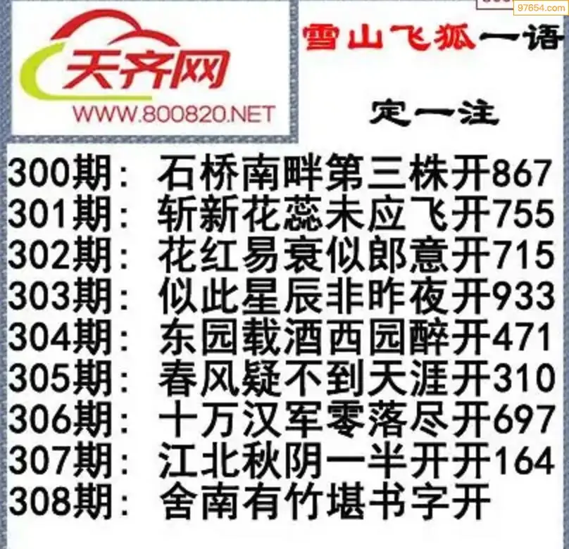 308期3D晚秋(乙种和值)谜:福胆增倍 D:一炮合响