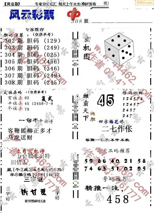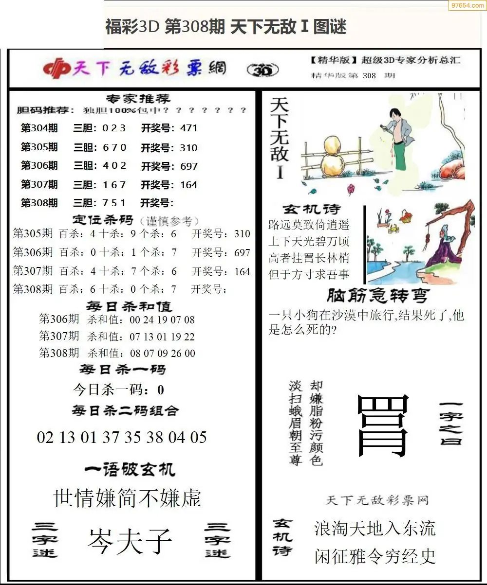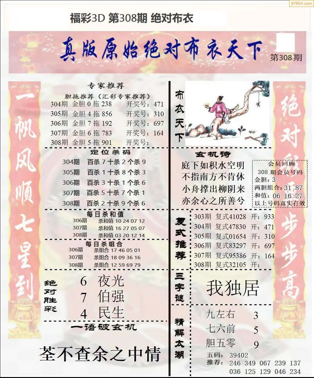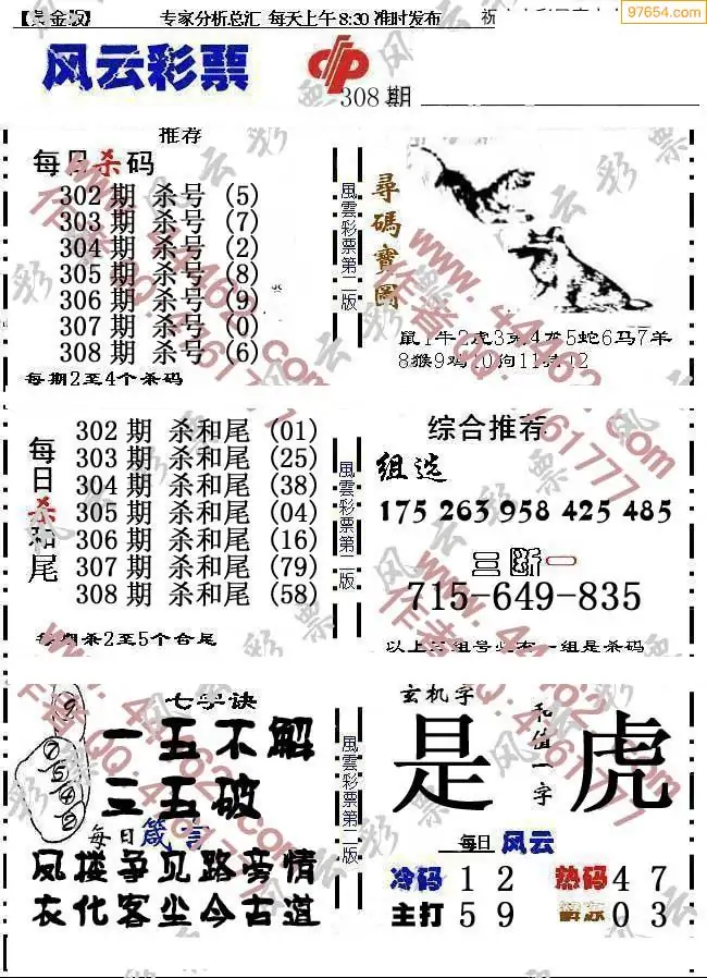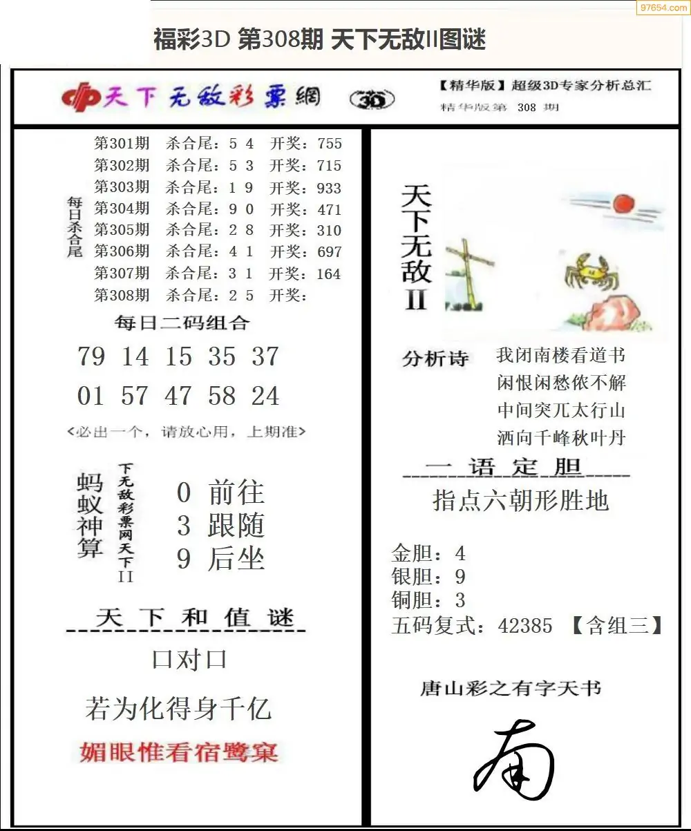 25年308期3d选号彩报图谜画谜