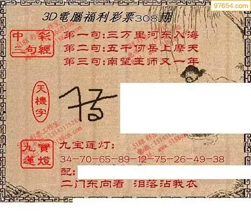 25308期福彩3D正版天宇和值谜