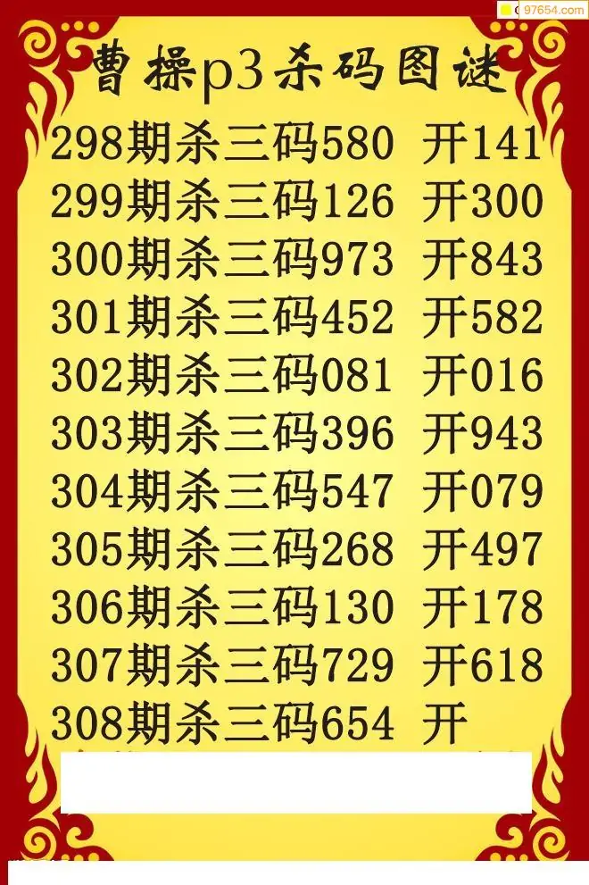 25年308期曹操杀码p3图谜