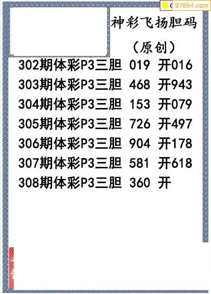 25308期神彩飞扬体彩P3三胆图谜