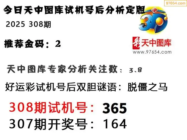 25年308期天中图库专家3D试机号后分析汇总