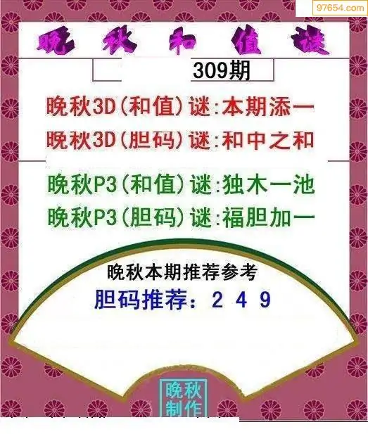 25309期晚秋和值谜胆码推荐