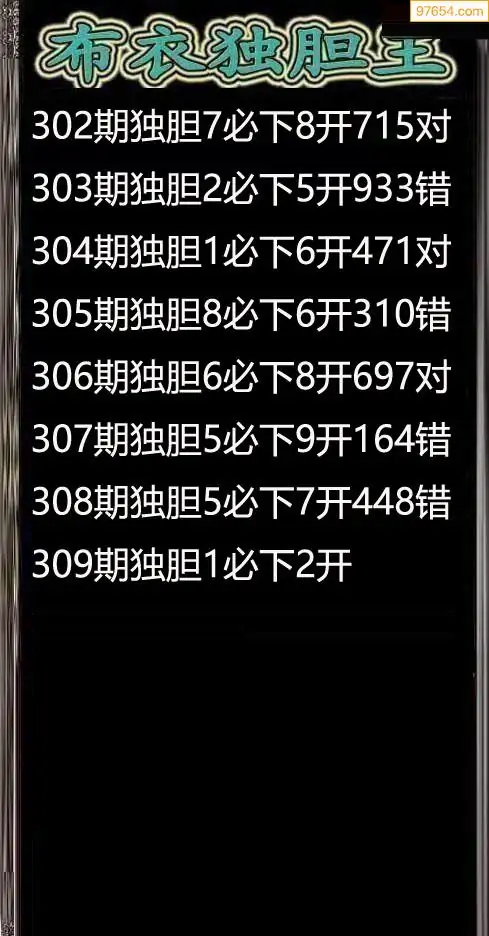 309期97654本站收集胆码出号预测