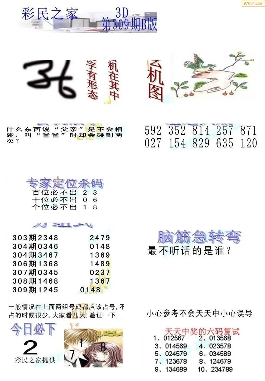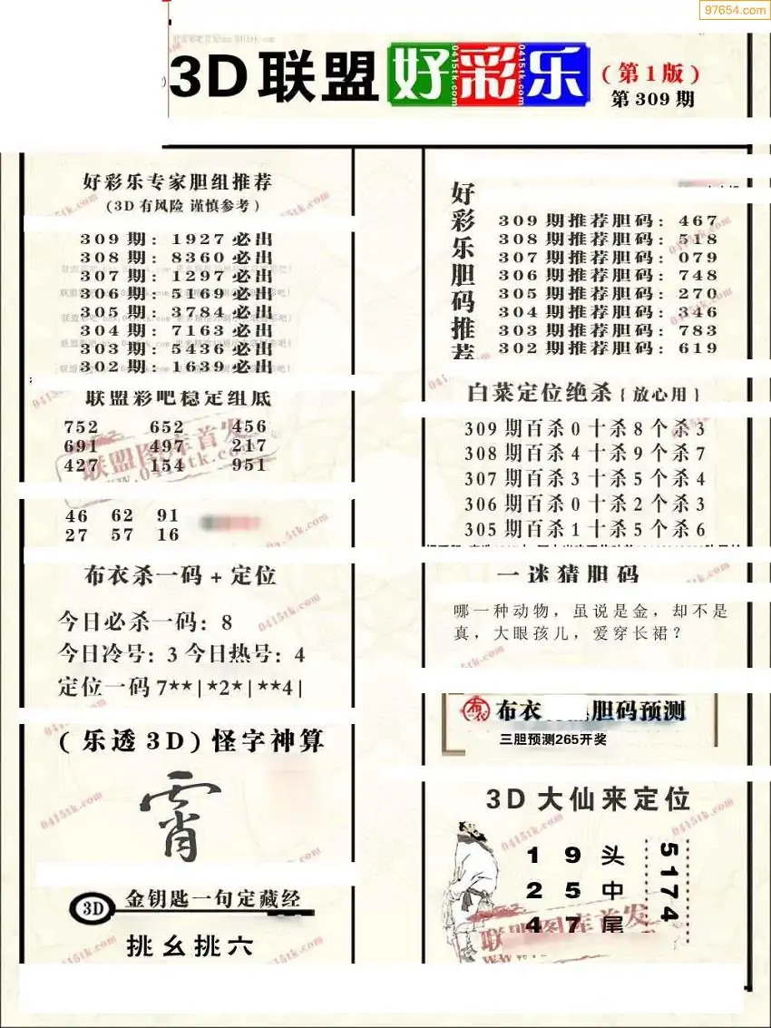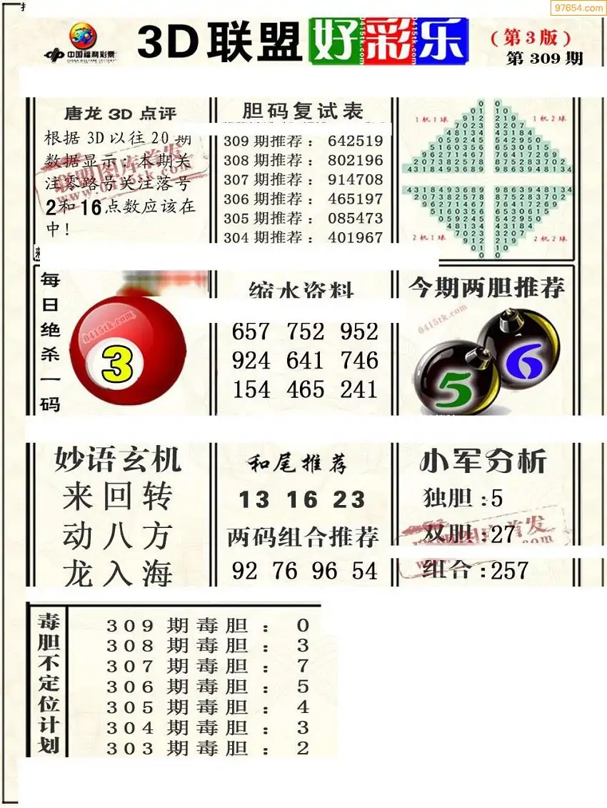 (8)25年309期今日3d各类彩报汇总
