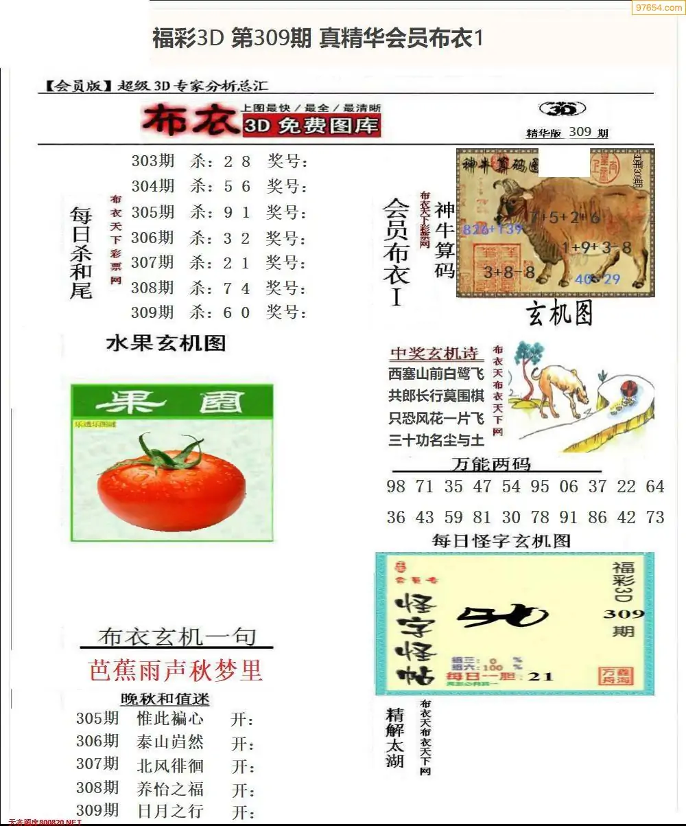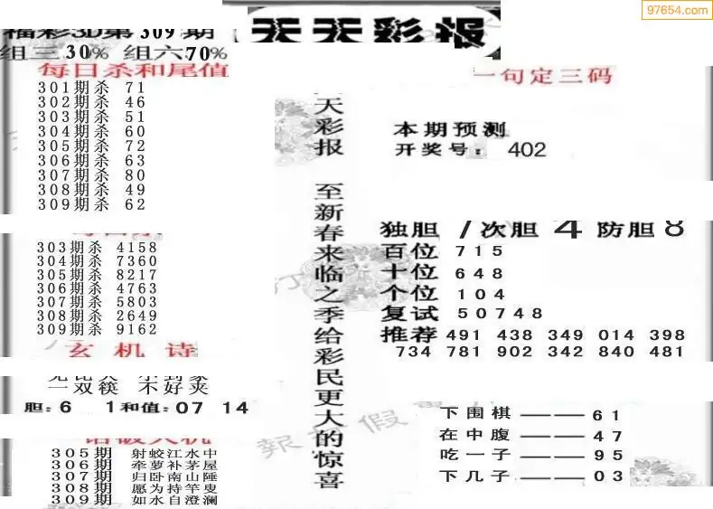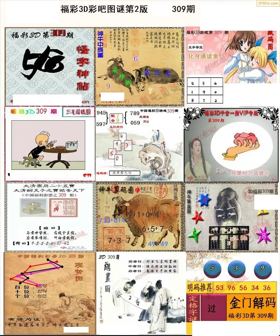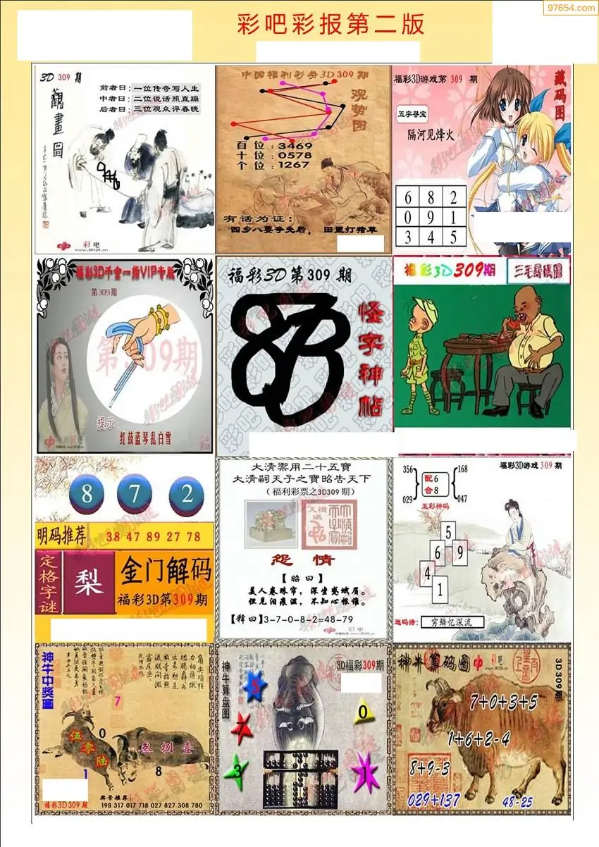 (8)25年309期今日3d各类彩报汇总