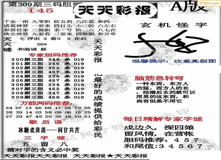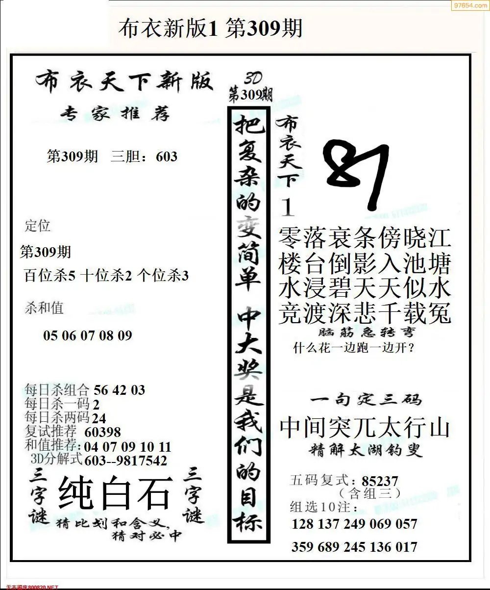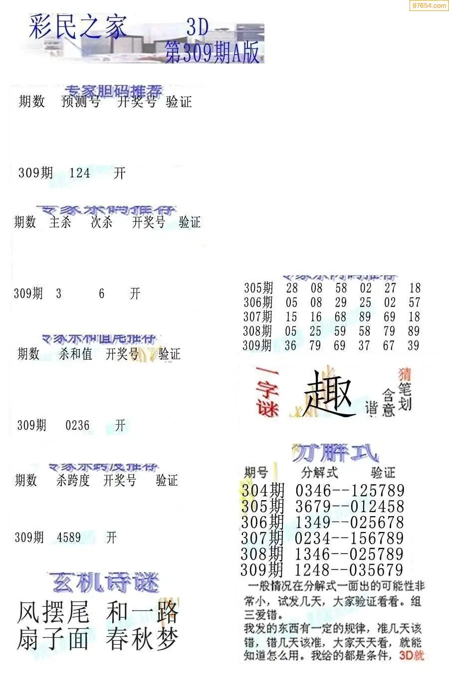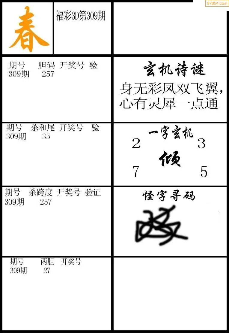 (5)25年309期福彩字谜图谜总汇