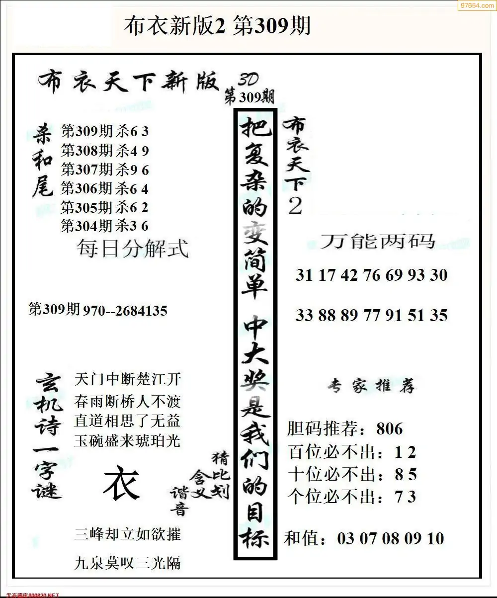 (2)25年309期本期3d图迷汇总