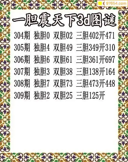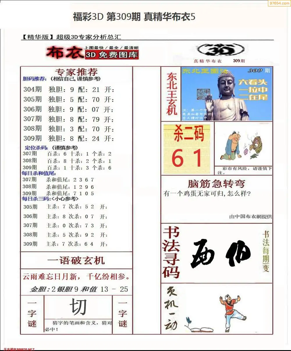 (1)25年309期今日3d图谜总汇