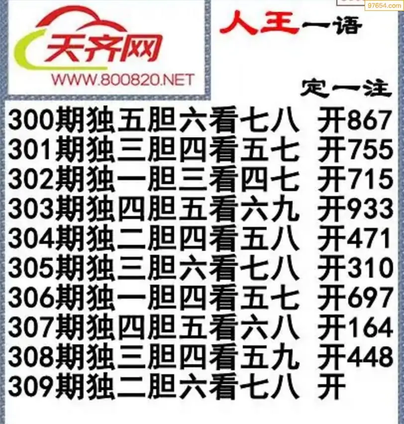 309期3D晚秋(乙种和值)谜:上行下效 D:差点和尾