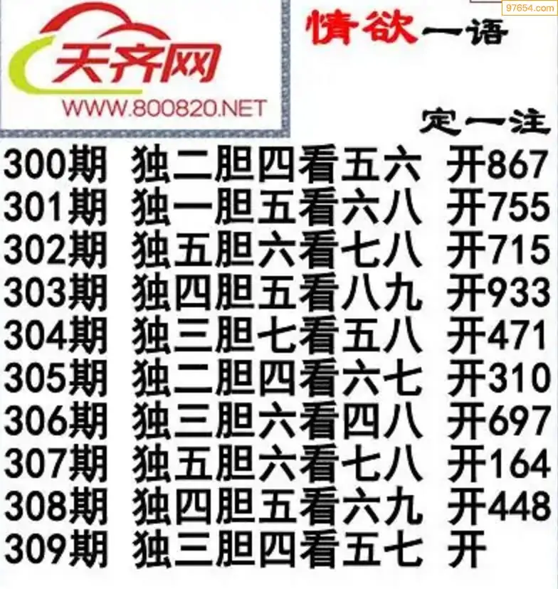 309期3D晚秋(乙种和值)谜:上行下效 D:差点和尾