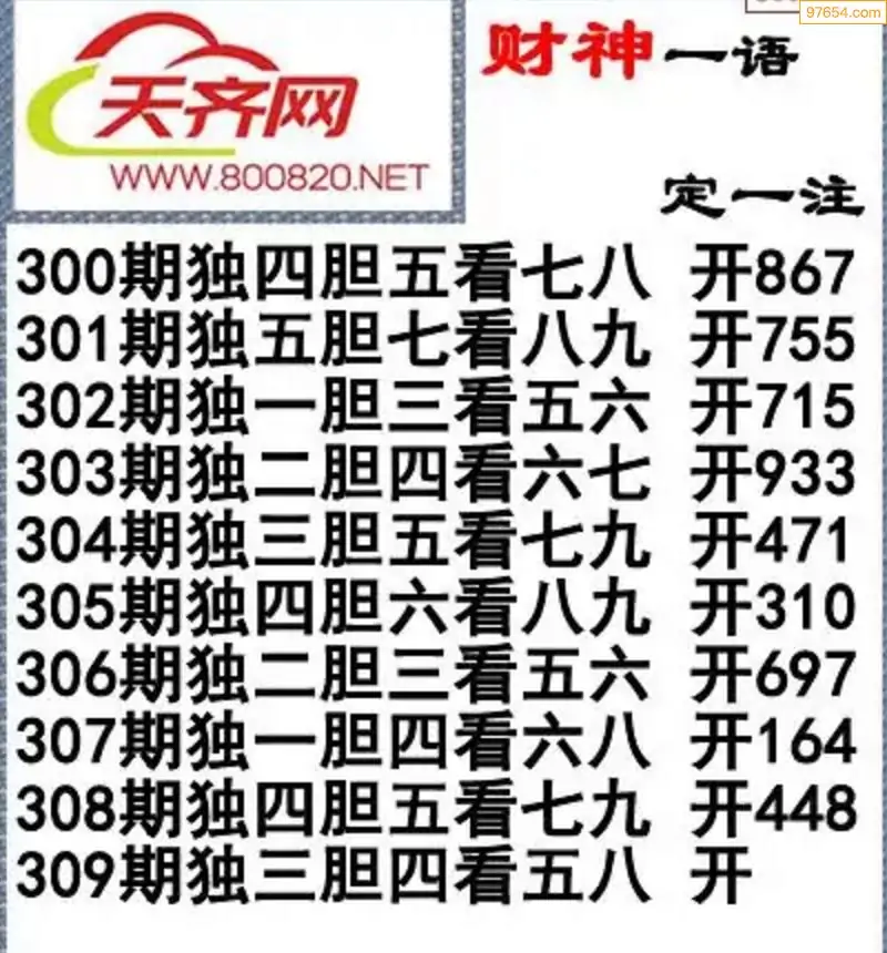 309期3D晚秋(乙种和值)谜:上行下效 D:差点和尾