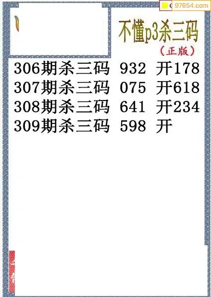 25年309期不懂当前排三杀码图迷