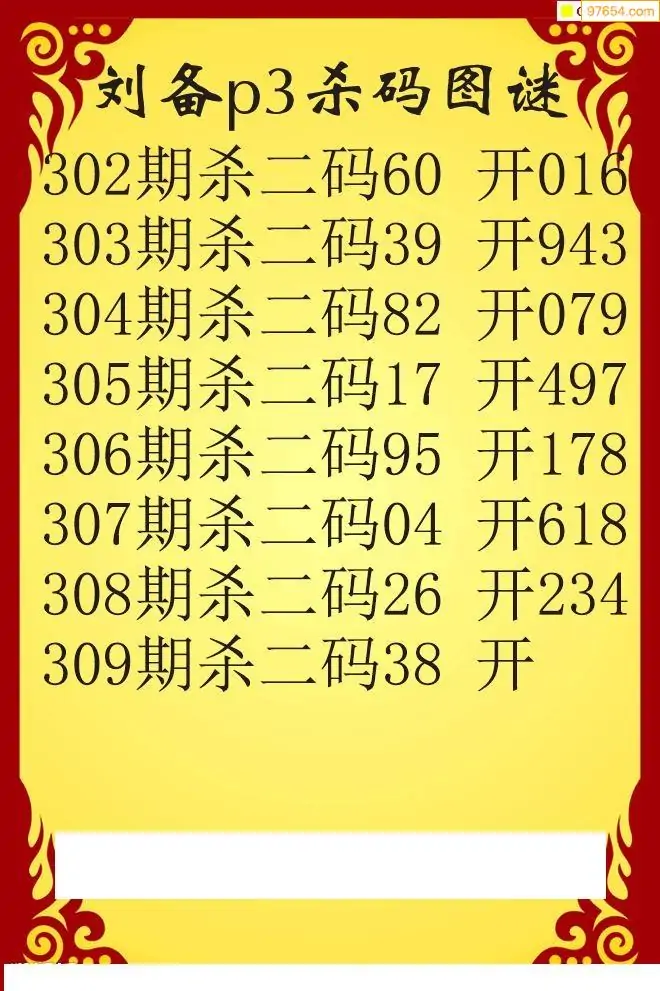 25年309期刘备p3杀码图谜