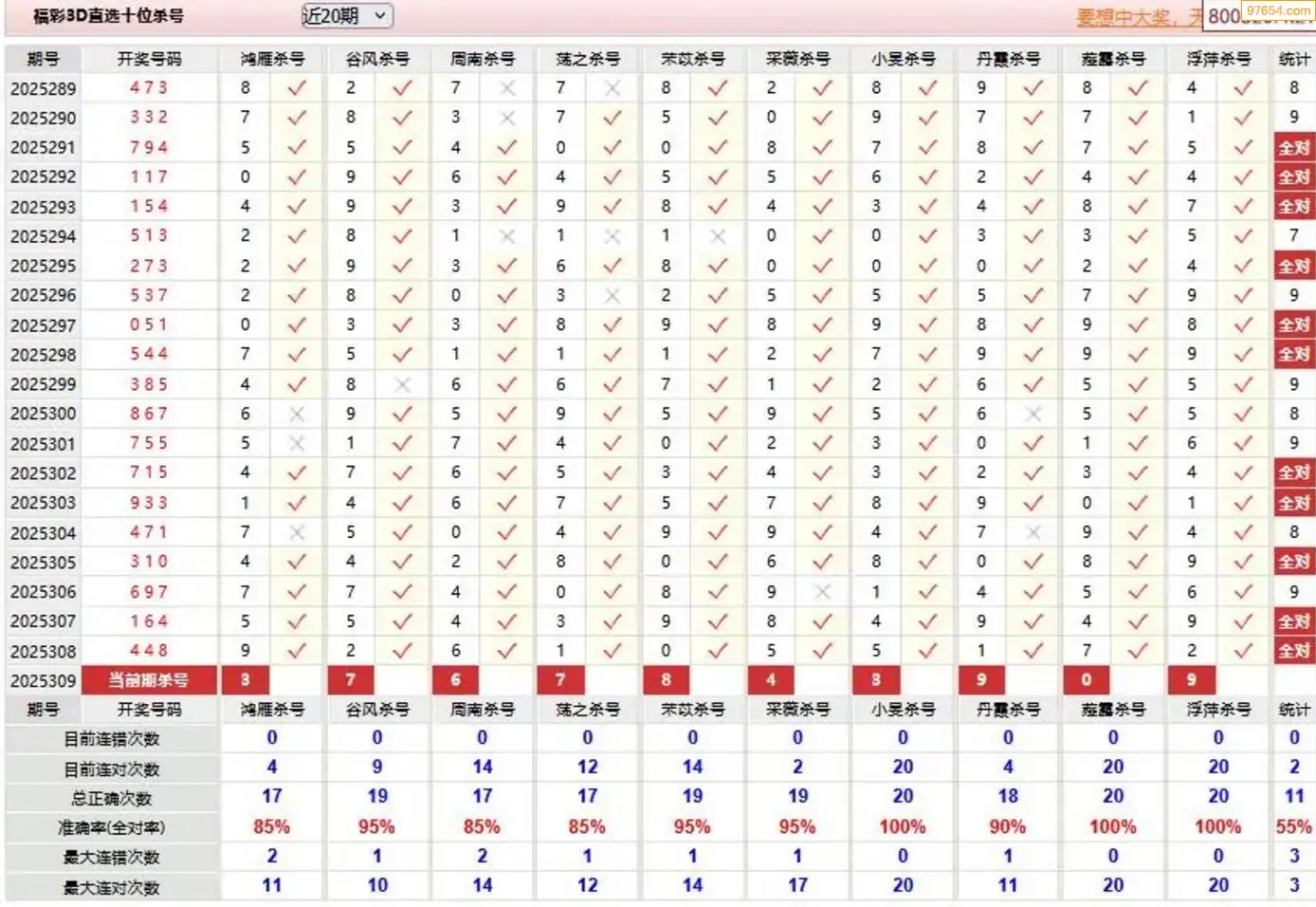 福彩3D25年309期非诚勿扰杀两号 3连中