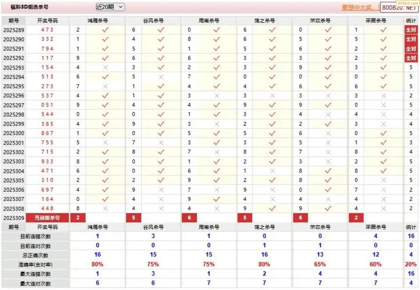 福彩3D25年309期非诚勿扰杀两号 3连中