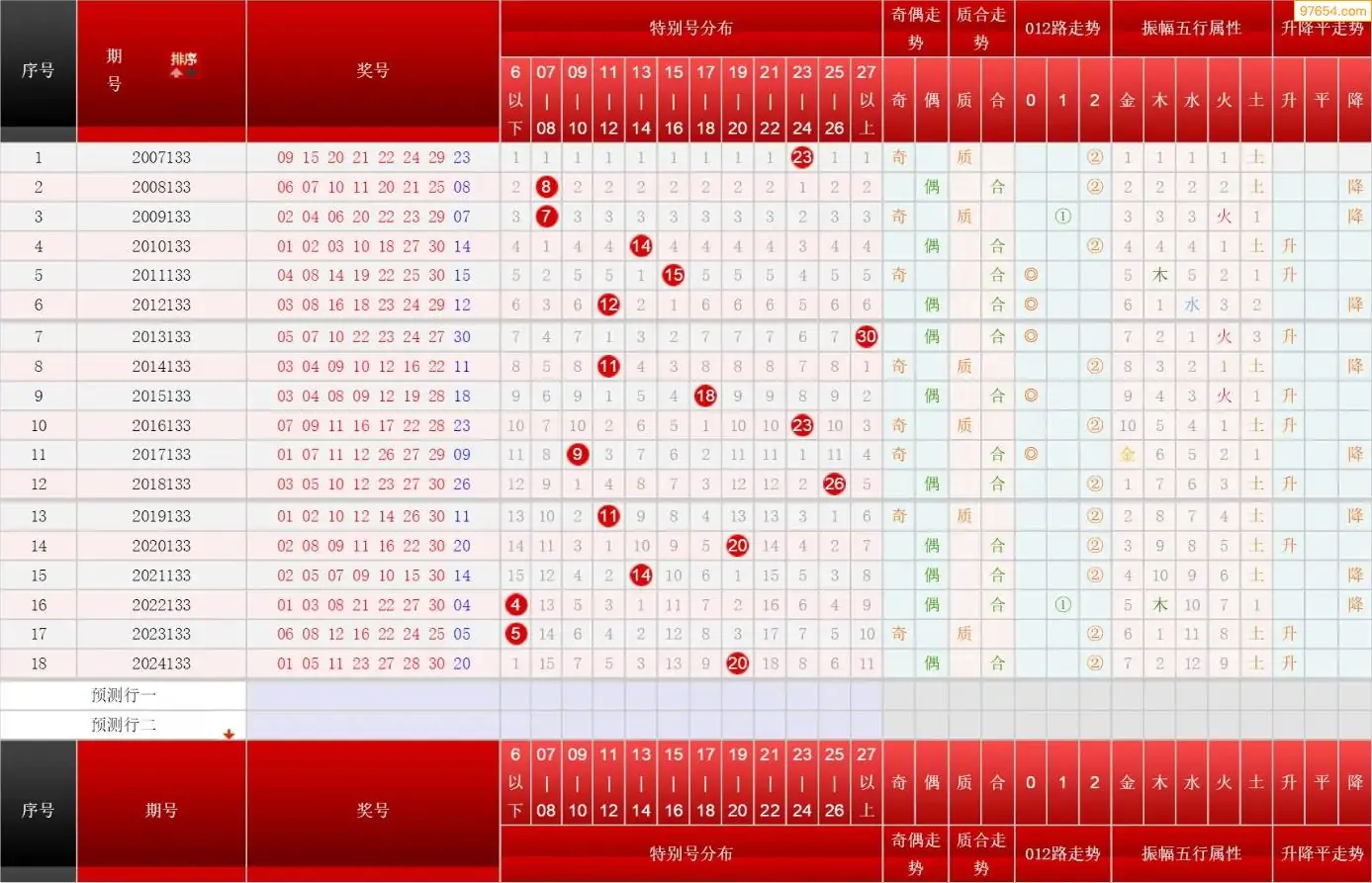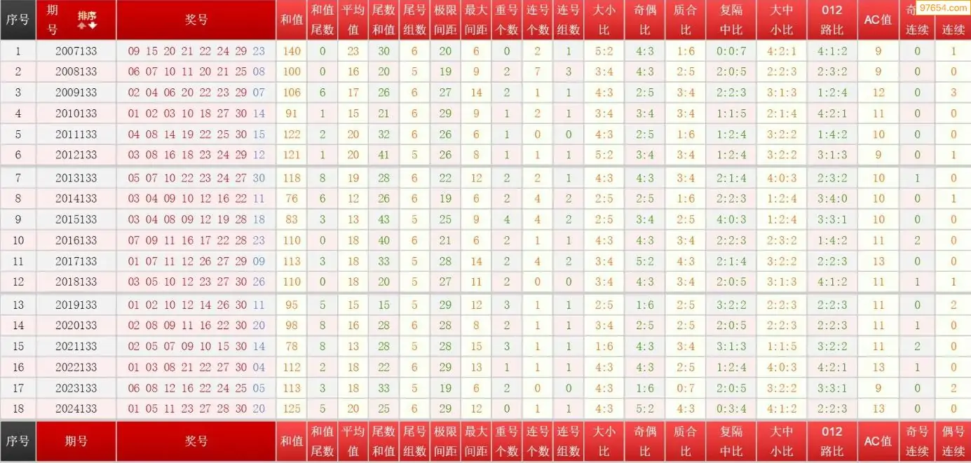 133期七乐彩历史同期图表+走势图