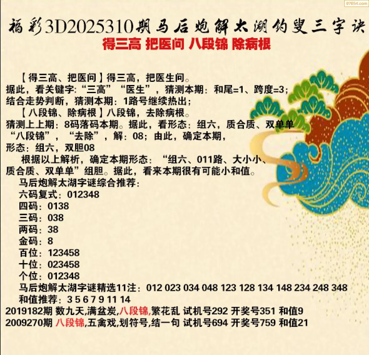 25310期福彩3d太湖钓叟三字诀历史汇总