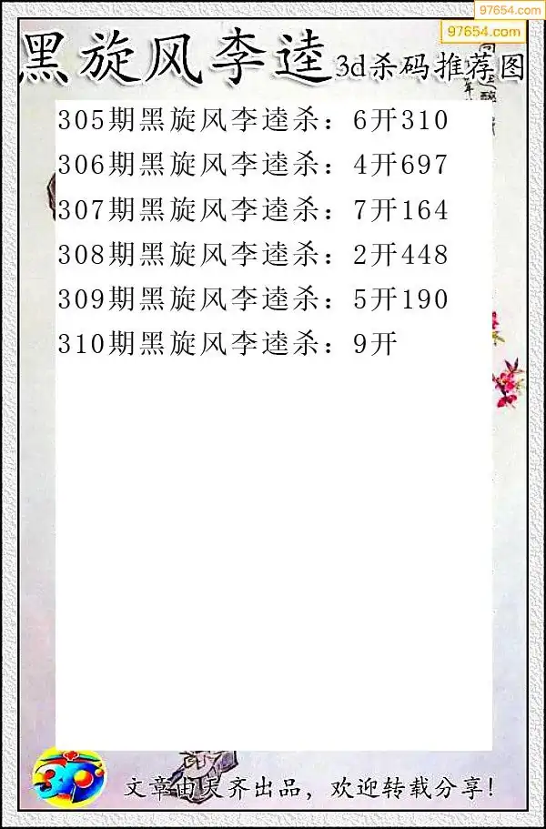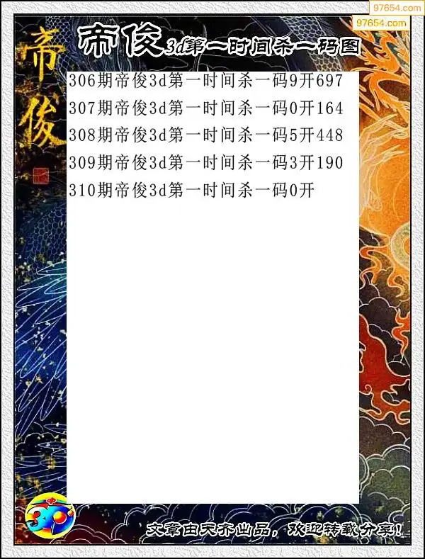310期97654本站收集杀码出号预测