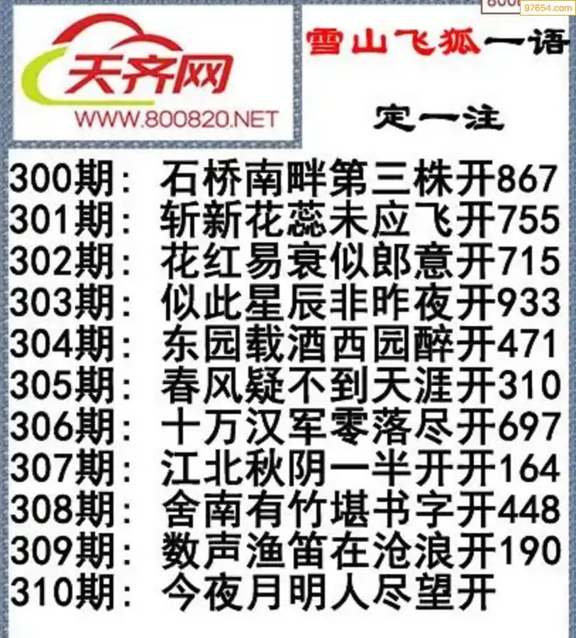 彩票3d字谜310期雪山飞狐一语定一注