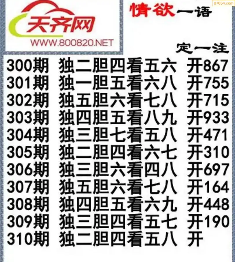 310期3D晚秋(乙种和值)谜:福胆增倍 D:符合谜头