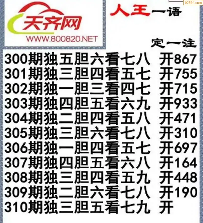 福彩3d左岸清风25年310期一语定一注