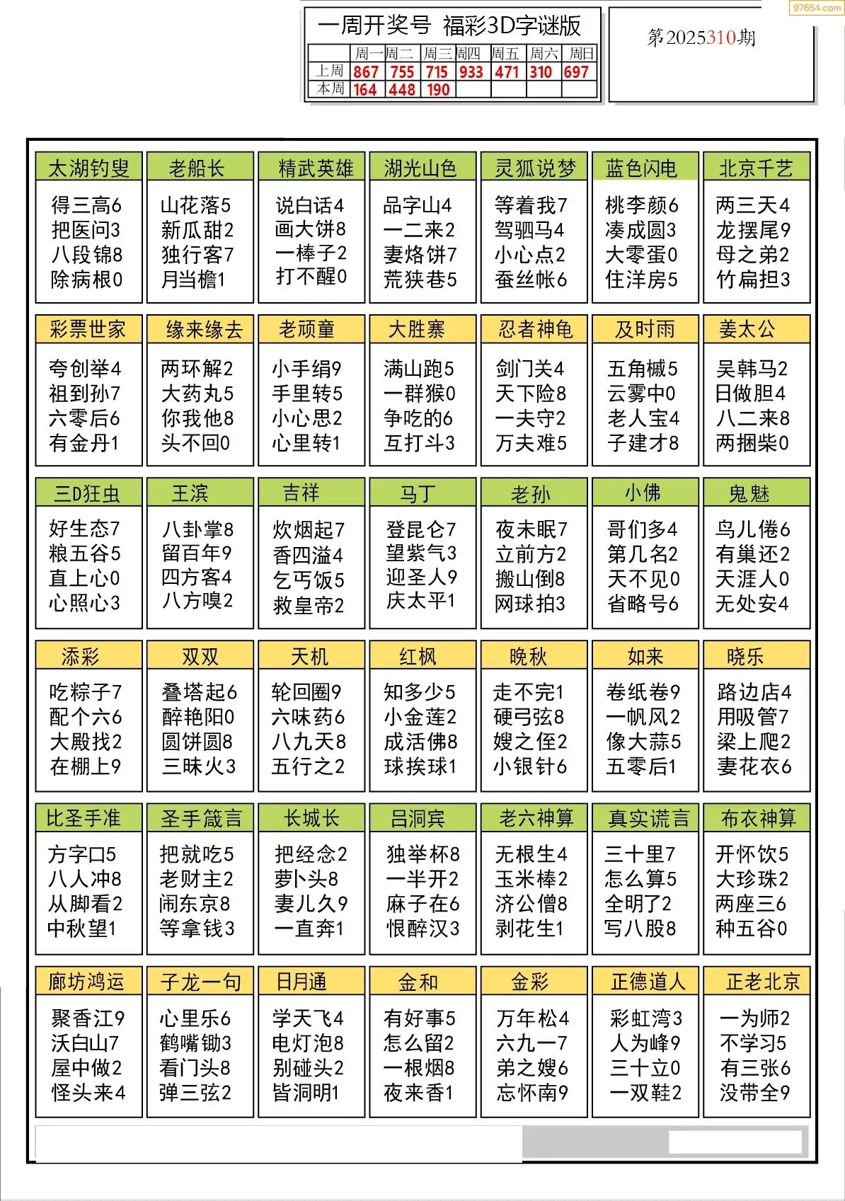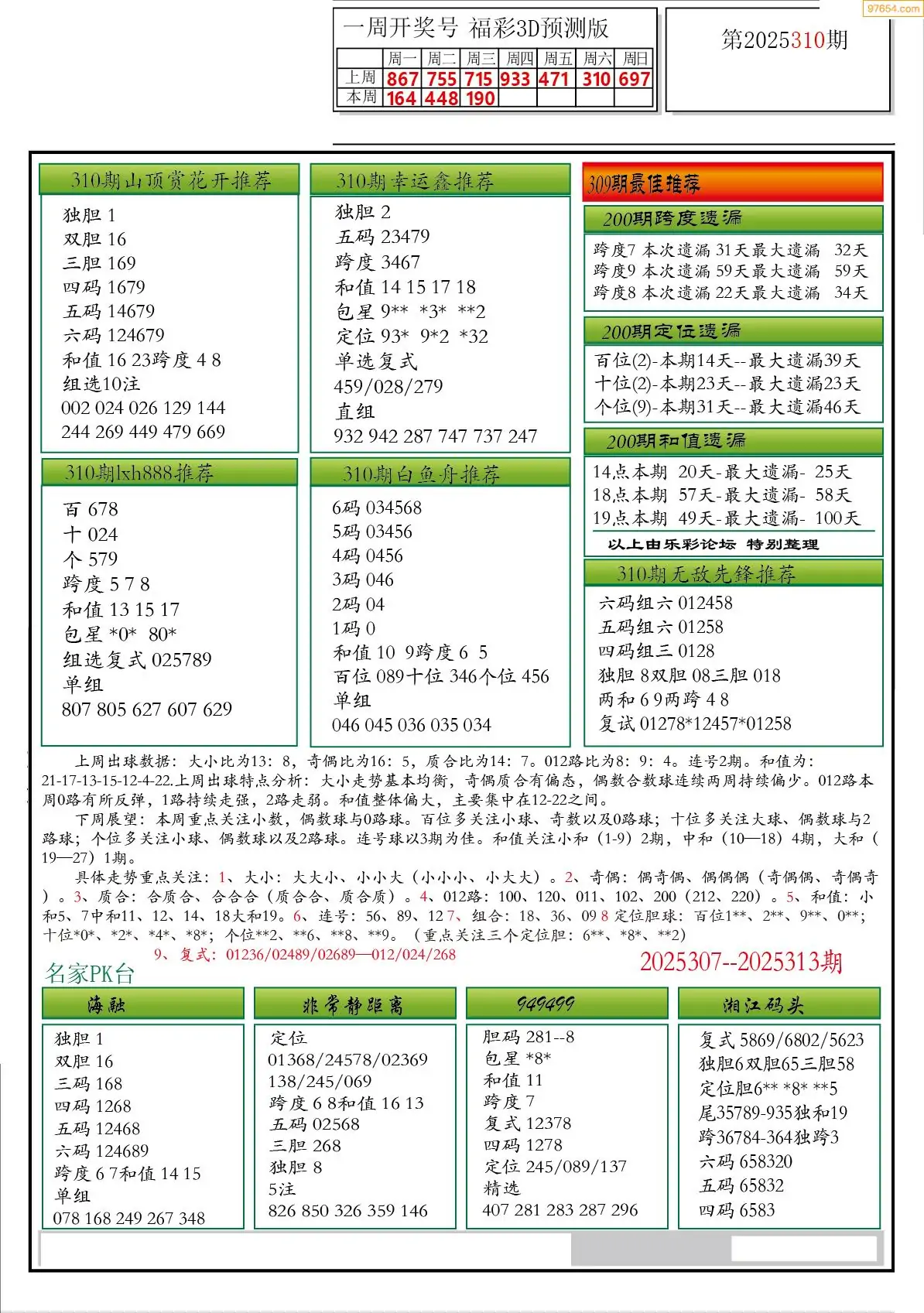 25年310期3d选号彩报图谜画谜