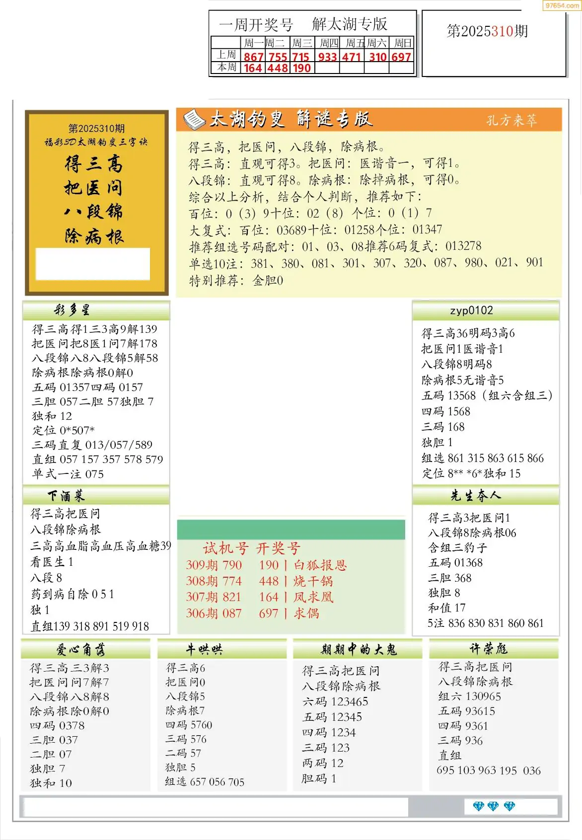 2025年310期电子彩报专家分析