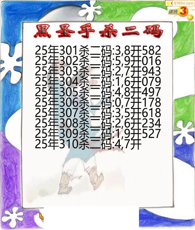 25年310期黑圣手排3杀二码图迷