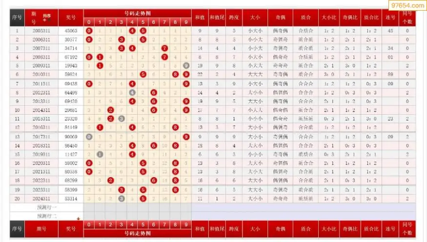 311期排列三历史号码对比图+数据走势分析