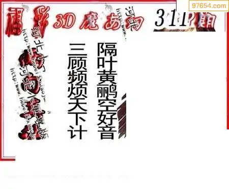 25311期福彩3D正版天宇和值谜