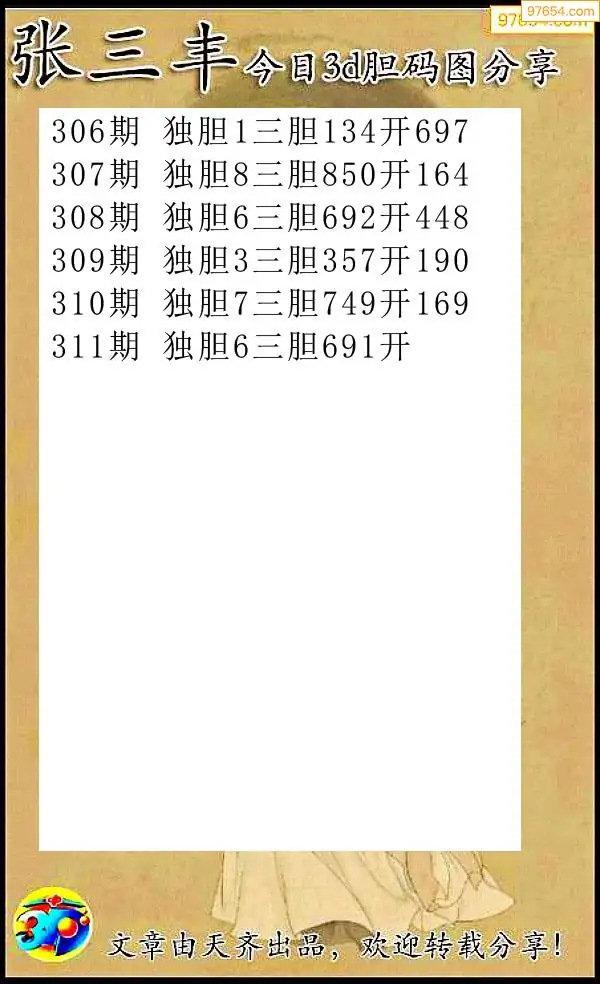 2025311期彩彩网3d原创图迷搜集(天中整理)