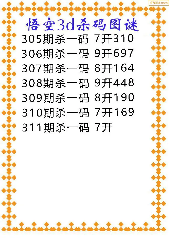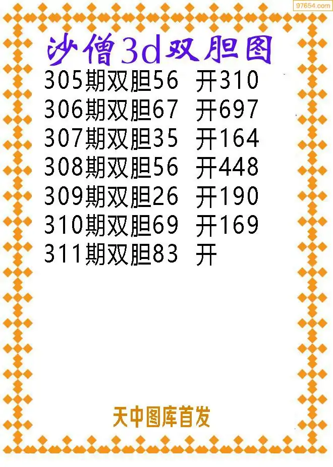 311期97654本站收集胆码出号预测