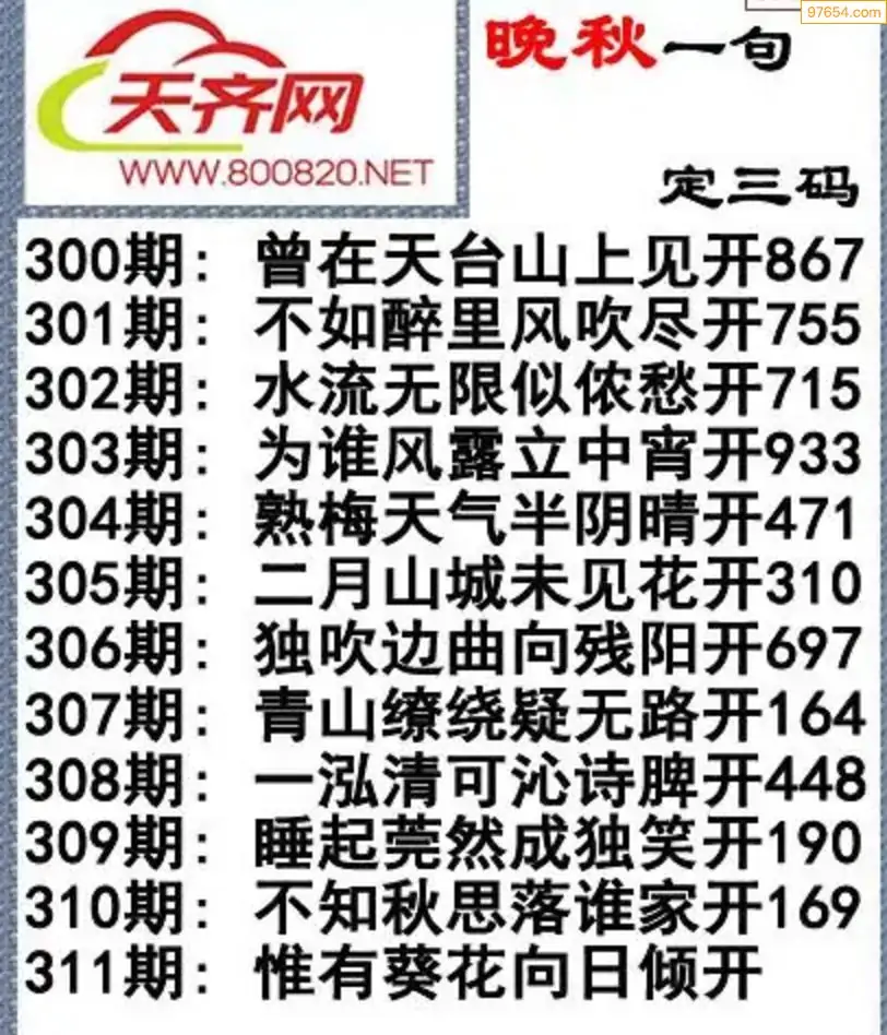 311期3D晚秋(和值)谜:期返去头 D:期无头和