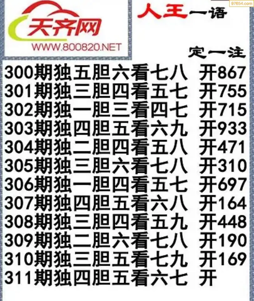 311期3D晚秋(乙种和值)谜:我心有胆 D:新年钟声