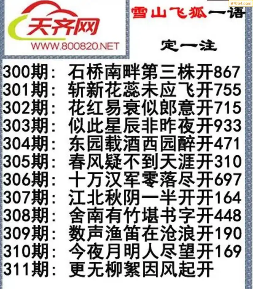 311期3D晚秋(乙种和值)谜:我心有胆 D:新年钟声