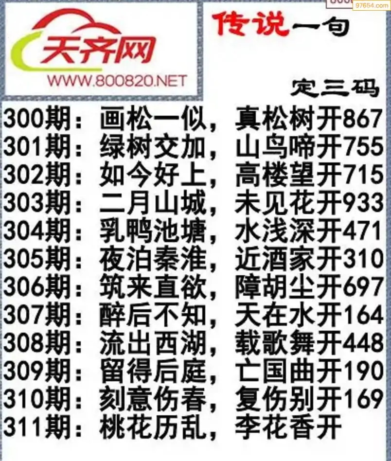 311期3D晚秋(乙种和值)谜:我心有胆 D:新年钟声