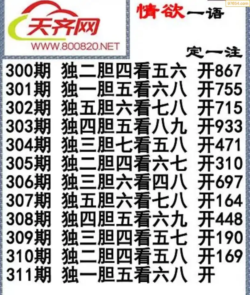 311期3D晚秋(乙种和值)谜:我心有胆 D:新年钟声