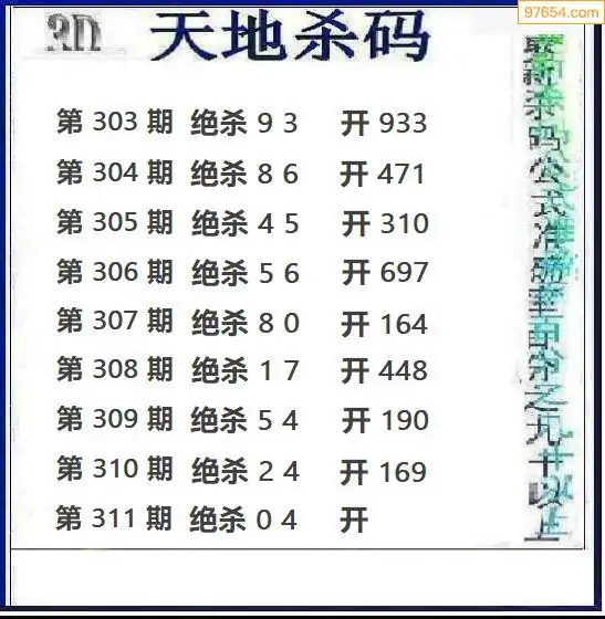 311期97654本站收集杀码出号预测