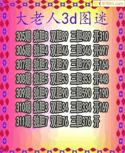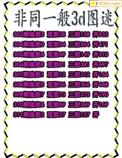 311期97654本站收集胆码出号预测