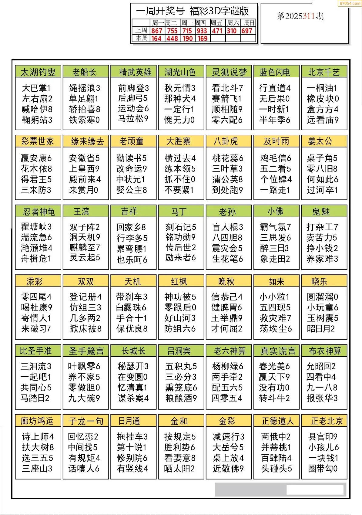 25年311期3d选号彩报图谜画谜