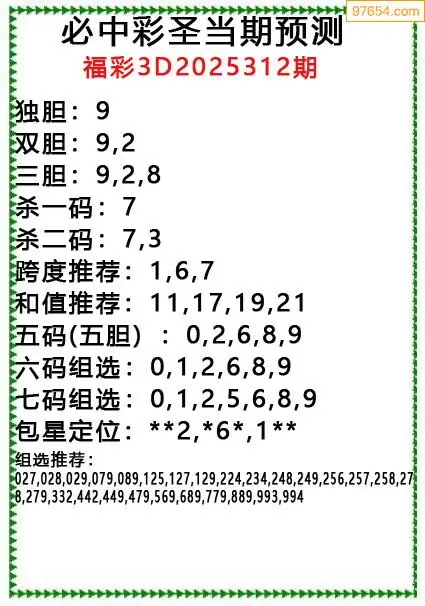 原创彩圣分析312期3D出号规律