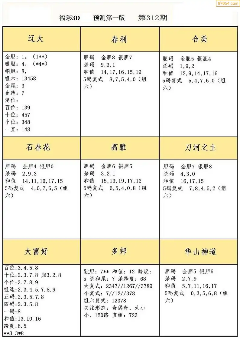 福彩3D312期天牛彩吧套图整合总汇