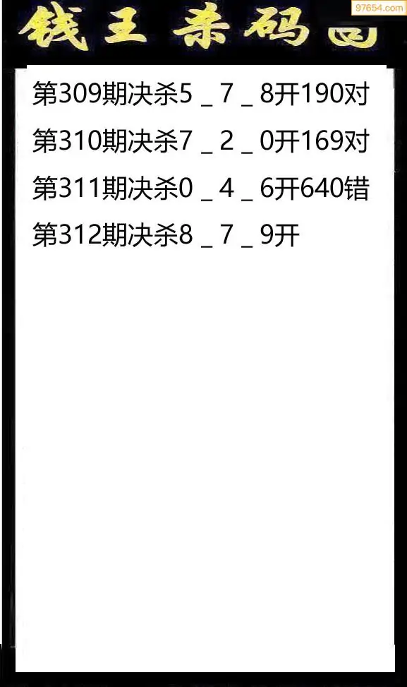 312期97654本站收集杀码出号预测